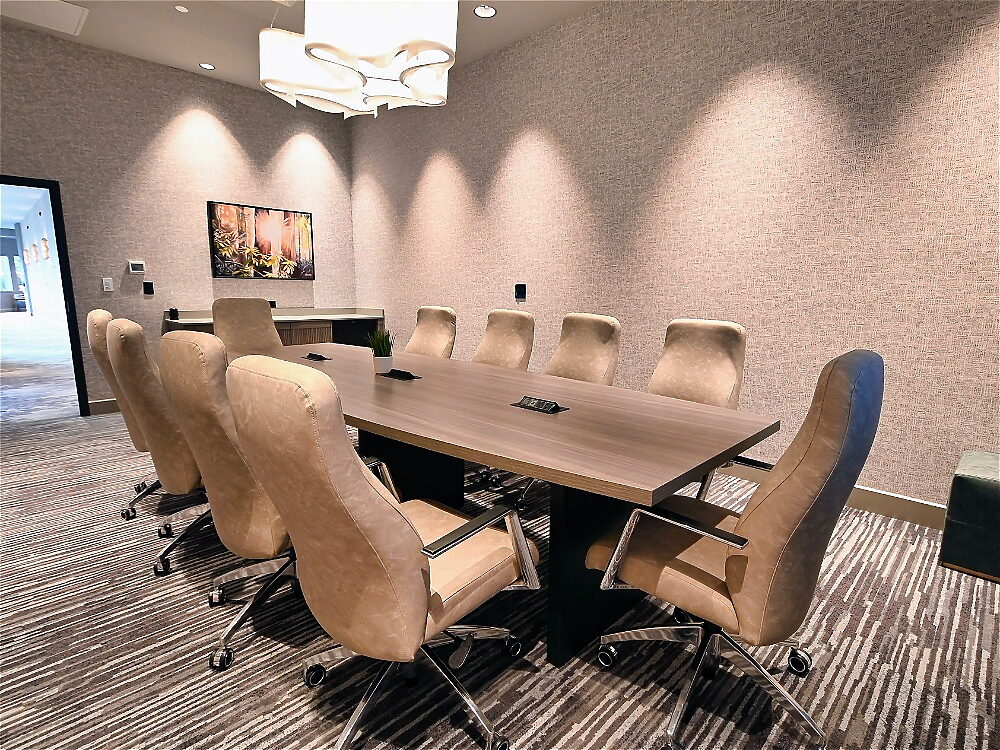 * Seat up to 10 guests in a private boardroom designed for focus and results.